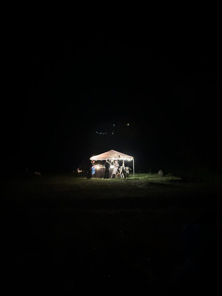 車の窓を閉めていても聞こえてくるほどの爆音の音楽と、ポツンと光るテントを発見!