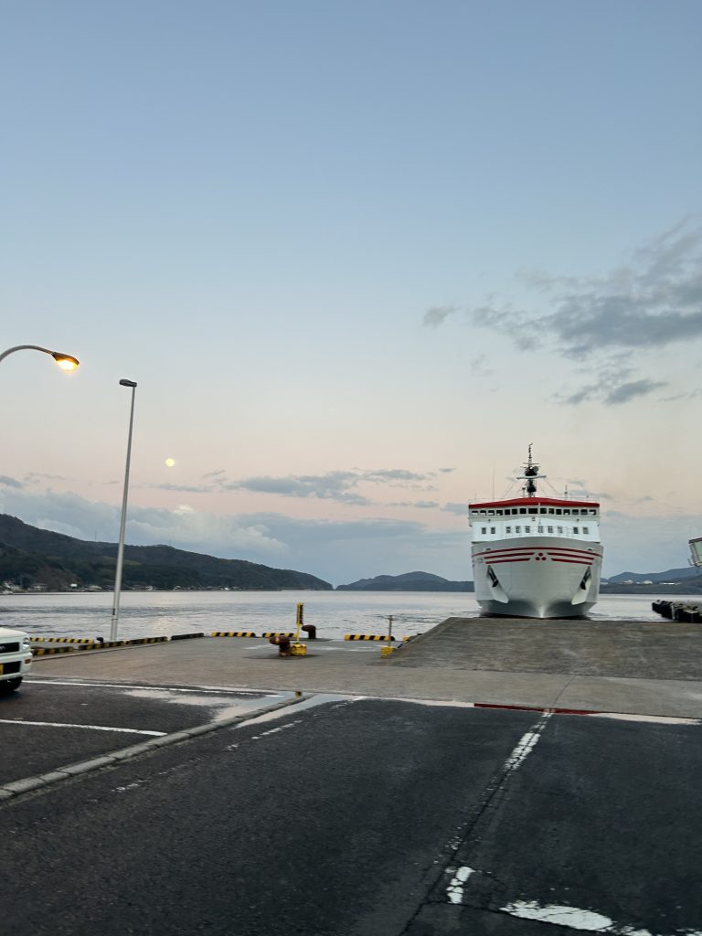 3時間という時間はあっという間に過ぎ、経由地点である別府港(西ノ島町)に到着した際には綺麗な満月と夕焼けが私たちを歓迎してくれました。
