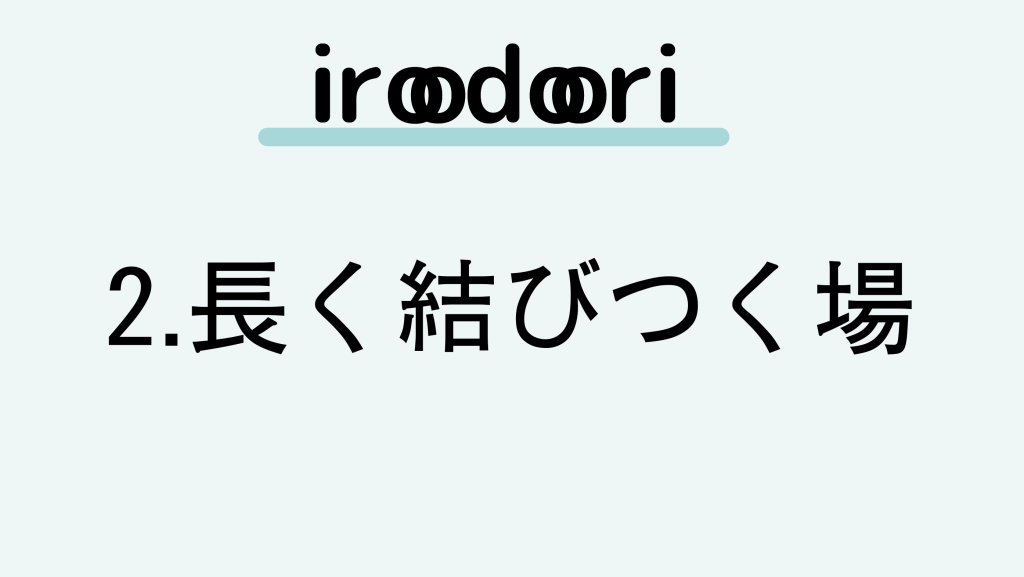 iroorooriをローマ字読みすると「いろおどおり」というようになるかと思いますが、実は「いろどり」と読むんです!