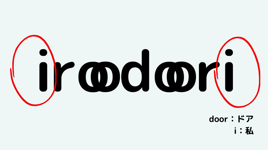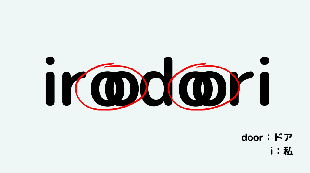 「iroodoori」のロゴを見ていると自然と2人の人が1つの扉を開けたり閉めたりしながら行き来しているような感じに読み取れませんか?